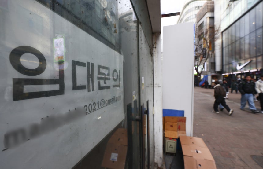 서울 명동거리의 한 상점 앞에 임대 안내문이 붙어 있다. 뉴시스