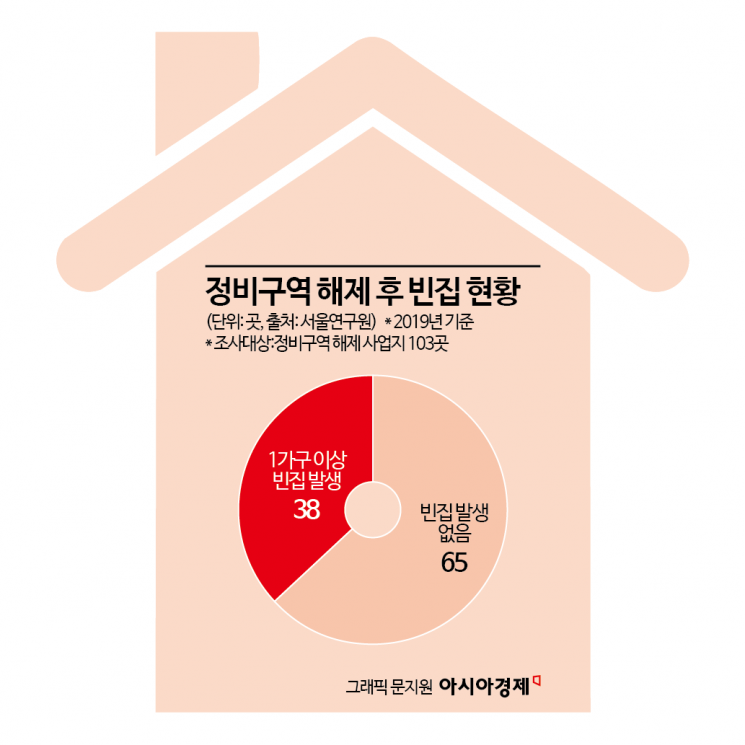 뉴타운 출구전략에 따른 대가는 혹독했다. 서울연구원 조사에 따르면 2019년 서울 내 정비구역 해제된 사업지 중 103곳을 현장 조사한 결과 226가구의 빈집이 생겨난 것으로 나타났다. 1가구 이상 빈집이 생겨난 구역은 38곳에 달했다. 전체 빈집의 55.3%(125가구)의 경우 4개의 구역(종로구 옥인1구역·충신1구역·사직2구역·성북구 성북4구역)에 모여있다.