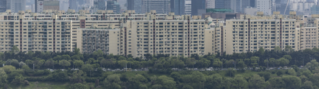 13일 서울 응봉산에서 바라온 강남구 압구정동, 청담동 일대 아파트 단지의 모습. 연합뉴스