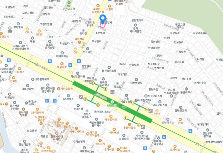• 2호선 낙성대역 5번 출구 도보 2분 거리