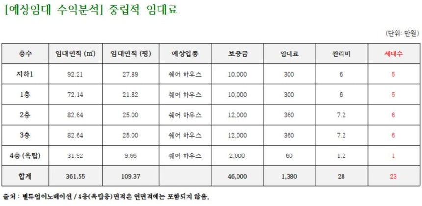 • 인근 원룸 임대 시세를 기준으로 산정된 중립 임대료 적용