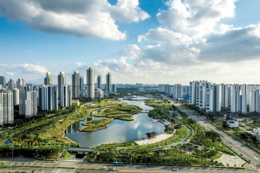 청라국제도시와 청라호수공원 전경. 인천경제자유구역청 제공