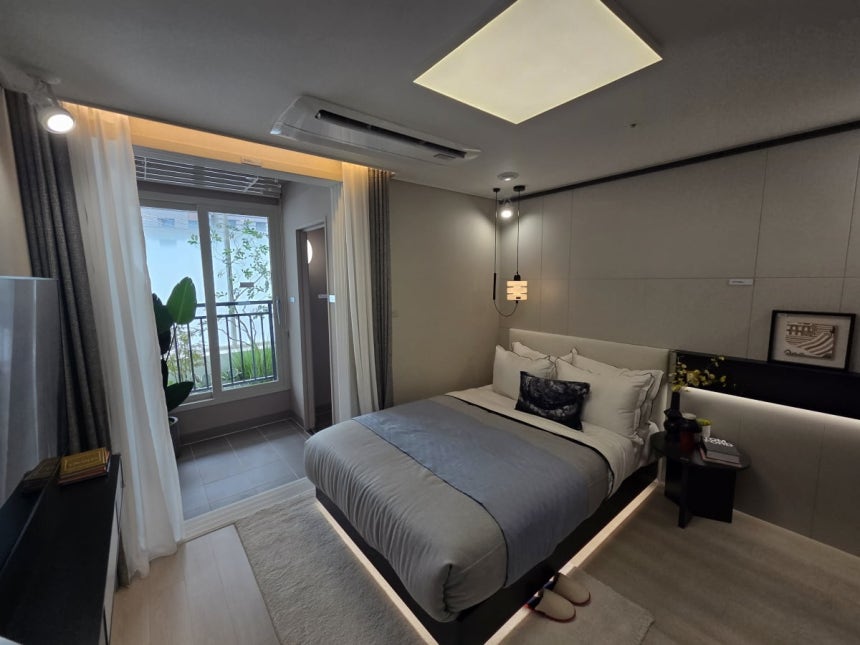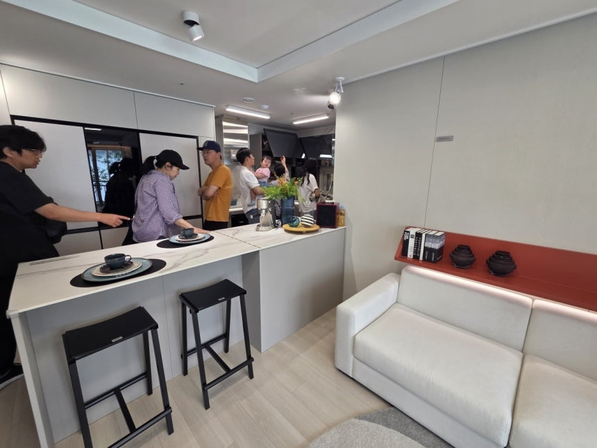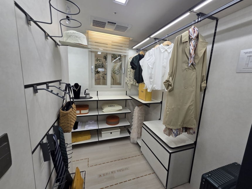 이날 개관한 견본주택에선 4개 유형 중 2개 유형을 직접 확인할 수 있었다. 금호건설은 현관에서부터 차별화된 기능을 갖춘 특화설계를 강조했다. 문을 닫자마자 바로 잠기는 기능부터 베젤을 최소화한 디자인, 지문인증 출입 기능까지 갖췄다. 내부엔 신발장부터 다용도실, 드레스룸까지 다양한 수납공간을 자랑했다. 특히 드레스룸과 파우더룸의 크기를 키워 전용면적 84㎡와 비슷한 크기처럼 제공하는 게 돋보였다.