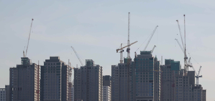 서울 한 아파트 건설현장에 멈춰 서 있는 타워크레인. 사진과 기사는 관련 없음. [박형기 기자]공급은 지속적으로 이뤄지는 반면 인구는 점점 줄고 실수요층도 제한적이어서 매수 심리 회복이 더딘 것으로 풀이된다. 미분양 물량도 이러한 현상을 심화하고 있다.