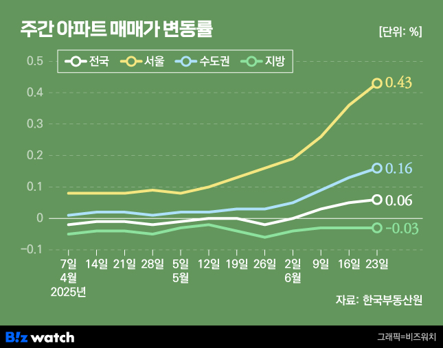 서울 아파트 단지 전경/사진=이명근 기자 qwe123@정부는 지난달 27일 '가계부채 관리 강화 방안'을 발표했다. 서울을 포함한 수도권 내 주택담보대출 최대한도를 6억원으로 제한하고 유주택자는 주택담보인정비율(LTV) 0%를 적용하는 규제다. 생애 최초 주담대를 비롯해 디딤돌대출, 버팀목대출 등 정책대출도 축소시켰다.▷관련기사:이재명 정부 첫 집값 대책은 '초유의 대출 옥죄기'(6월27일)선호 지역인 강남3구(서초·송파·강남구)를 비롯해 '마용성(마포·용산·성동구)' 등 한강 벨트 지역까지 열기가 번질 기미를 보이자 특단의 조치를 내놓은 것이다. 기존에 거론됐던 규제지역 및 토지거래허가구역 확대 등 조치 대신 돈줄 자체를 옥죄는 강수를 택했다.