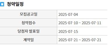 자료 : 청약홈 세부적으로 보면 전용 39㎡ 1가구, 59㎡ 1가구, 84㎡ 2가구 등 총 4가구이다. 청약은 오는 10~11일 실시된다. 당첨자 발표는 15일, 계약은 21일이다. 계약금은 10%이고, 잔금은 90%(10월 21일)이다. 재당첨 및 전매제한은 없고, 실거주의무 2년이 적용된다.