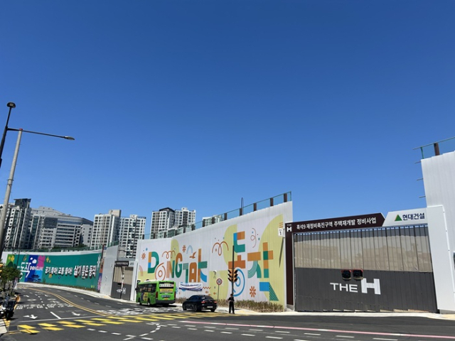 이날 서울경제신문이 찾은 흑석뉴타운 11구역은 착공 준비가 한창이었다. 지난해 이주를 마친 빈 땅에는 흙 무너짐을 방지하기 위한 포가 덮어져 있었고, 작업자들은 공사장 가림막을 세우며 분주하게 움직였다. 국립서울현충원과 맞닿아있는 흑석11구역은 바로 앞에 한강이 펼쳐져 있고, 경사가 단점으로 꼽히는 흑석뉴타운 내에서 비교적 평지에 가깝다. 현충원 쪽으로 고개를 조금만 돌리면 서초구 반포동에 들어서는 ‘반포 디에이치클래스트(반포주공1단지 1·2·4주구)’ 재건축 현장이 보일 만큼 강남권역과 맞닿아있다. 이에 조합 측은 단지명으로 ‘서반포 써밋더힐’을 추진하기도 했다. 현재 관리처분계획인가 변경 절차를 밟고 있으며, 올해 9월 착공을 목표로 하고 있다. 시공사는 대우건설이며, 공사가 완료되면 1511가구 대단지가 들어설 예정이다.