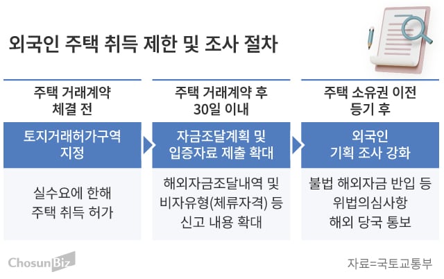그래픽=손민균국토부는 현장 조사도 확대해 외국인의 해외자금 반입에 따른 주택거래가 자금세탁 등으로 의심되는 경우 금융정보분석원(FIU)에 통보해 해외 세무당국 및 금융정보분석기관에 전달할 방침이다.