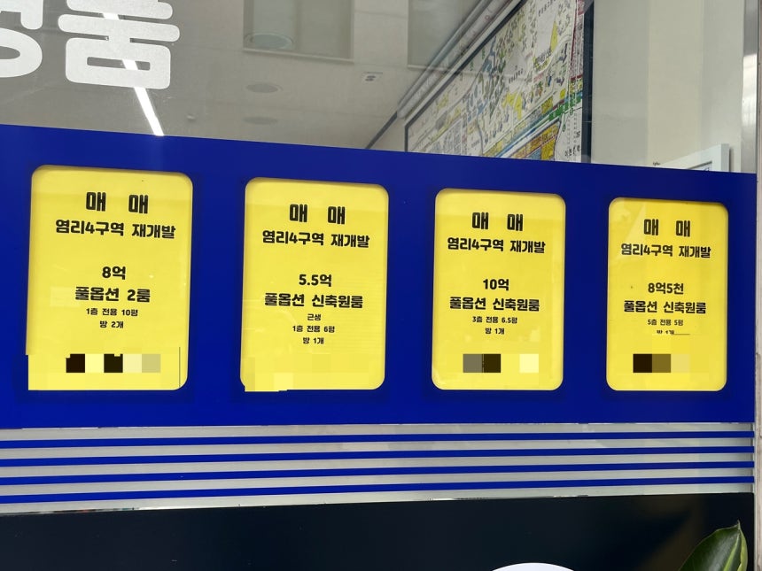 염리4구역 내 매물의 모습. 윤성현 기자염리4구역 정비사업은 지난 2015년 토지등소유자 과반이 해제를 신청하면서 정비구역에서 해제된 이후 10년 가까이 표류했다. 그러나 인근 구역의 재개발 사업이 속속 진행되면서 신축 아파트 단지가 들어서자 주민들 사이의 분위기도 달라졌다. 또한 2020년 개발 제한 직전 신축 다세대 빌라로의 전환이 이뤄지며 소형 지분 투자자가 대거 유입됐다. 그 결과 현재 재개발에 대한 주민동의율도 85%까지 치솟았다.