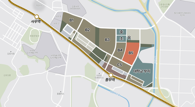 호반건설은 이번 B5블록 공급 이후 B4블록, C5블록에도 추가로 공급할 예정으로, 풍무역세권 내 총 3개 블록에 총 2,580가구 규모의 ‘호반써밋’ 브랜드 타운을 완성할 예정이다.