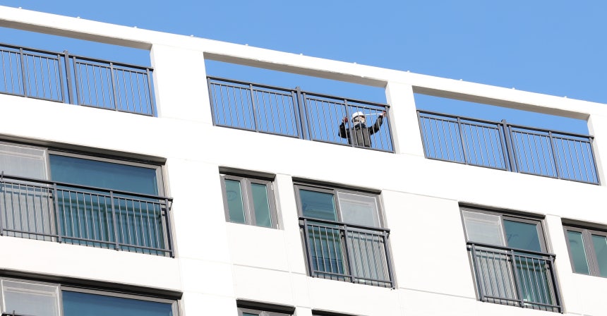 지난해 1월 15일 경기 김포의 한 아파트 옥상에서 한 작업자가 측량을 하고 있다. /뉴스1