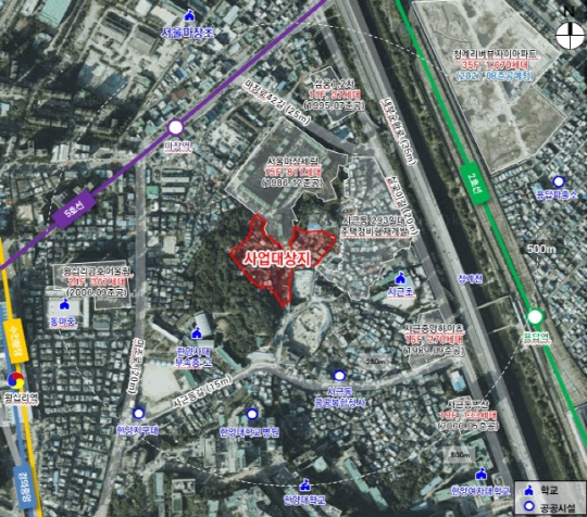 대상지는 2호선 방배역 인근에 있는 데다 우면산, 매봉재산, 방배근린공원이 감싸고 있어 주거 입지가 좋은 지역이다.