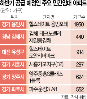 현대건설은 9월 대전 ‘힐스테이트 도안리버파크’ 1·2·3·5단지의 민간임대 물량을 공급할 예정이며 중흥건설은 11월 양주에서 ‘양주 중흥S클래스 1블록’ 624가구를 선보인다. 이밖에 파주 ‘운정3 A8’(552가구), 시흥 ‘거모지구 B2’(297가구) 등도 하반기 공급이 예정돼 있다.