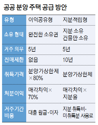 문제는 공급 방식이다. 각각의 장단점이 있다. 이익공유형은 수분양자가 분양가의 80% 수준에 입주해 5년간 의무 거주하고 매각 차익의 약 70%를 가져가는 구조다. 수분양자는 인근 시세 대비 저렴한 가격으로 주택을 소유할 수 있고 서울시는 매각 차익의 일부를 회수할 수 있다. 하지만 전매제한이 없어서 수분양자의 이익이 과도하다는 비판이 제기된다. 자칫 강남 입성 ‘로또 분양’과 단기 시세 차익을 노린 기회로 변질될 우려도 있다.