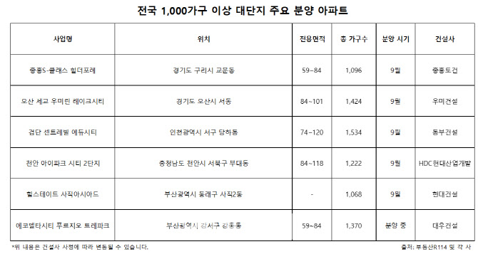 이런 분위기 속 9월에는 전국 곳곳에서 주목할 만한 대단지 분양이 예정돼 있다.