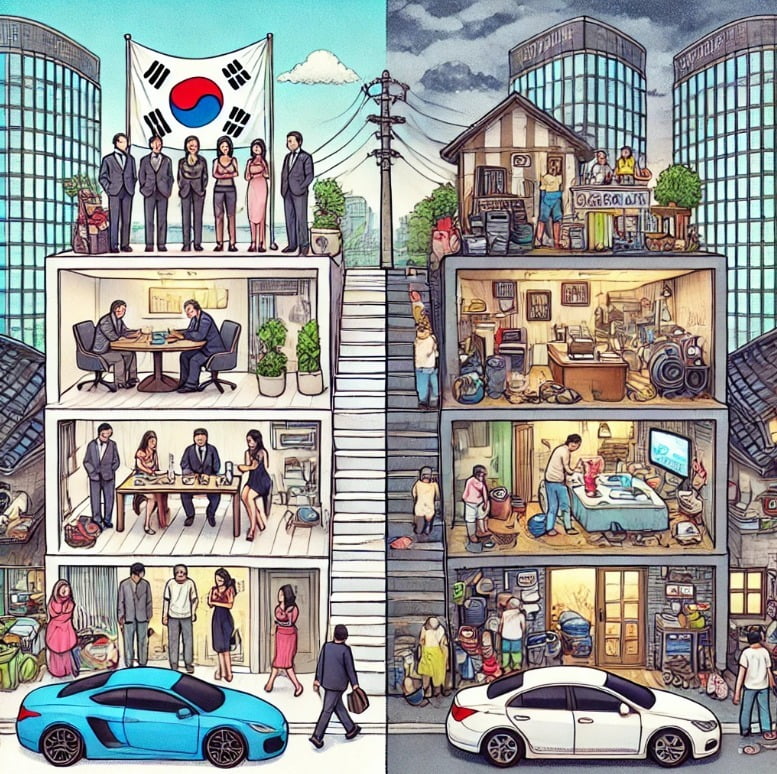 초양극화를 나타낸 이미지. 사진=챗GPT집값 양극화의 원인은 다양하다. '똘똘한 한 채' 현상이 심화하기 시작한 것은 문재인 정부부터다. 신종 코로나바이러스 감염증(코로나19) 사태와 맞물려 저금리 환경이 조성되자 집값이 치솟았고, 서울 전역 등을 투기과열지구로 묶고 분양가 상한제를 확대 적용하는 등 각종 규제가 도입됐다.