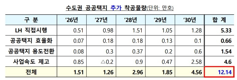정부가 공공 주도의 주택 공급 확대를 통해 2030년까지 수도권에 135만가구를 착공한다. 이를 위해 한국토지주택공사(LH)는 수도권 공공택지를 민간 건설사에 파는 대신 직접 사업 시행자로 나서 공공주택을 공급한다. 새로운 신도시를 짓는 대신 기존 2·3기 신도시 내 상업용지 등 비(非)주택용지에 아파트를 짓는 방안도 추진된다.