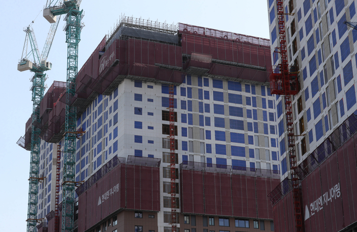 서울 중구의 한 주거시설 공사 현장 [박형기 기자]청약시장에서 발코니 확장 비용을 무상으로 제공하는 사업장이 실속을 추구하는 수요자들에게 관심을 받고 있다.발코니 확장비는 분양가에 포함되지 않아 수요자들의 부담을 더욱 키우는 요인으로 작용한다.