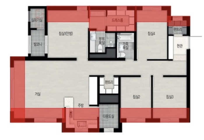 3면 개방형 설계 적용 전용면적 84㎡ 평면도 [사진 = GS건설]건설업계 관계자들은 개별 발코니 확장은 누수 등의 하자가 발생할 수 있다고 입을 모은다. 이럴 경우 장기적인 유지·보수 비용이 늘고 추가 시공 과정에서 공사기간이 늘어나 입주 시점 지연 같은 문제도 발생할 수 있다.