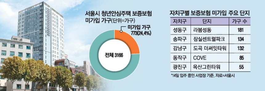 부산시도 청년을 대상으로 한 공공지원 민간임대주택인 희망더함주택에서 보증보험 미가입 가구가 300여 가구에 육박하는 것으로 나타났다. 계약자 입장에선 보증 사고에 대한 안전판이 없는 셈이다.