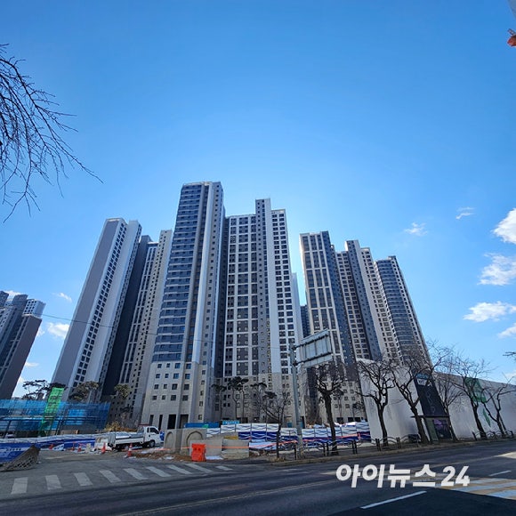 2025년 2월 '철산자이 더 헤리티지' 공사 현장 전경. [사진=이효정 기자 ]단지 인근에 조성되는 999가구 규모 '더샵 퍼스트월드'는 지난해 12월 분양 당시 같은 평형 21~29층이 최고 13억3440만원에 분양했다. 일반적으로 가구수가 많은 단지가 환금성 등이 유리해 더 가치가 높은 단지로 꼽히는데 9개월 만에 분양가가 약 5000만원 더 오른 셈이다.