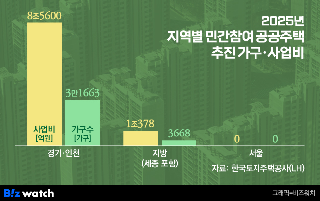 실제로 LH에 따르면 올해 민간참여 공공주택사업을 추진하는 37곳(3만5331가구)중 서울 사업장은 한 곳도 없다. 특히 연내 착공을 목표로 하는 민간참여 공공주택 사업 물량도 서울에서는 전무하다.