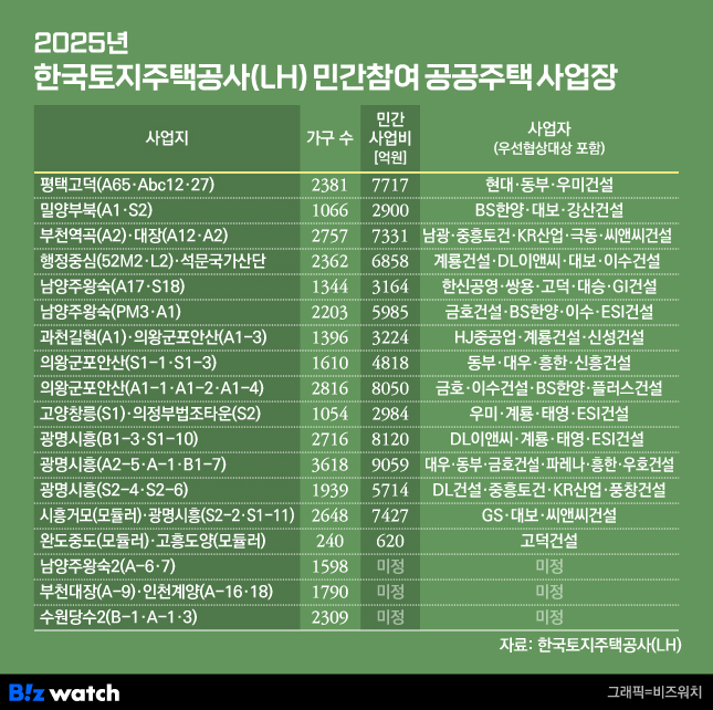 2025년 민간참여사업 추진 단지 현황./그래픽=비즈워치믿을 건 재건축·재개발?…"엇박자 인상, 시장 불신 우려"