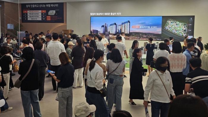 (관람객 모자이크 처리 필요) 지난달 26일 문을 연 상봉 센트럴 아이파크 견본주택 전경. 리얼투데이주간 기준 올해 최대 규모의 아파트 청약이 진행됐지만 입지와 미래 가치에 따라 성적이 엇갈리는 ‘옥석 가리기’ 현상이 나타났다. 서울과 경기 핵심 지역, 일부 지방 대도시 단지로만 수요가 쏠리는 양극화가 심화하며 정부의 주택 공급대책에 대한 실망감이 반영됐다.1일 청약홈에 따르면 전날 전국 8030가구를 대상으로 진행한 1순위 청약에 총 3만6165건의 청약이 접수돼 평균 4.5대1의 경쟁률을 기록했다. 이번 청약은 주간 기준 올해 최대 규모의 분양 물량인 데다 정부의 9·7 공급대책 발표 이후 도래한 본격적인 분양 성수기 물량으로 주목받았다. 추석 연휴 이후 청약시장 분위기를 가늠할 수 있는 척도이기도 했다.