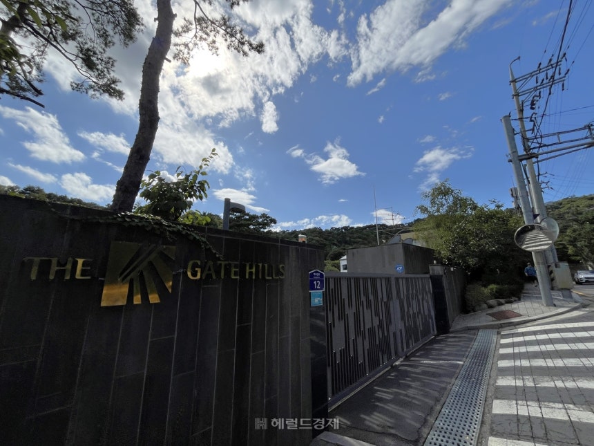 성인의 키보다 족히 2배는 높아 보이는 대문은 굳게 닫혀있고, 이따금 차고 문이 열리면 좁은 틈 사이로 주차된 고급차들을 엿볼 수 있다. 칼처럼 다듬어진 조경수들은 국립공원 못지않은 자태로 압도한다. 오직 12가구를 지키기 위해 수십 개의 폐쇄회로(CC)TV와 적외선 감지기가 설치돼 있어 ‘철통 보안’을 자랑한다.