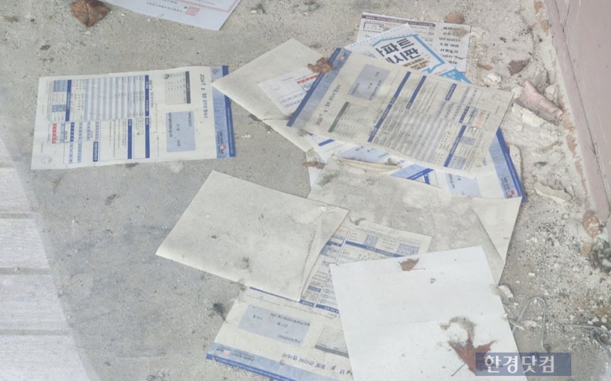 인천 송도 커낼워크의 한 공실에 지난해 관리비 고지서와 독촉장이 나뒹굴고 있다. 사진=오세성 한경닷컴 기자