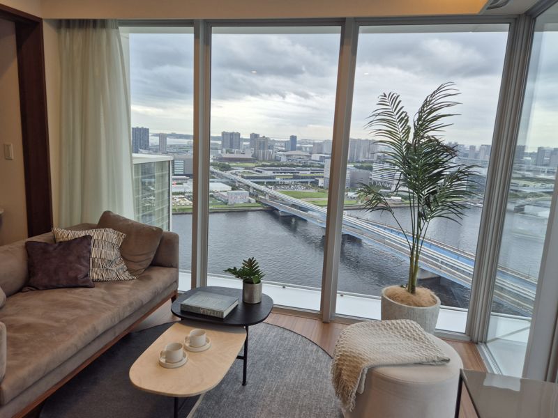 일본 도쿄의 타워맨션인 '더 파크하우스 하루미 타워즈 티아로 레지던스' 74㎡ 크기의 39층 집 내부. 거실에서 훌륭한 조망을 누릴 수 있다. 사진=전민경 기자