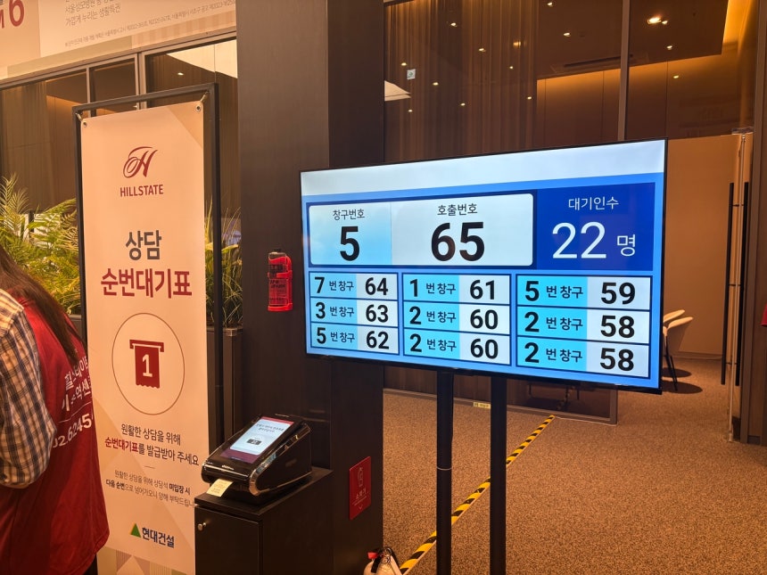 청약 상담 창구 순번대기표에 대기인원수가 22명까지 늘어난 모습. 정주원 기자무엇보다 분양가가 ‘강남 초입’ 신축치고 합리적이라는 점이 인기를 끌었다. 타입 별로는 ▷44㎡ 10억480만~11억2760만원 ▷49㎡ 11억4250만~13억5600만원 ▷59㎡ 16억2150만~17억4300만원 ▷74㎡ 18억2630만~19억4200만원 ▷84㎡ 20억6950만~22억7850만원이다.