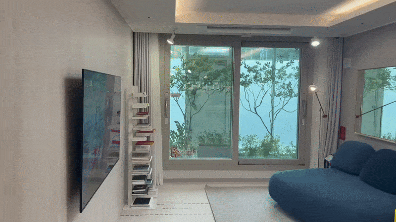 힐스테이트 이수역센트럴 견본주택 49㎡A 타입 유닛 거실의 모습. 정주원 기자견본주택에는 49㎡A와 84㎡A 두 가지 타입의 유닛이 마련됐다. 84㎡A 타입은 ‘ㄷ’자형 주방과 넉넉한 드레스룸·파우더룸이 특징이며, 49㎡A는 소형임에도 넓은 거실과 주방이 돋보였다. 힐스테이트 브랜드 최초로 유상 옵션 ‘H 파노라마 아일랜드(무빙퍼니처)’를 도입한 점도 이날 방문객들의 시선을 끌었다.