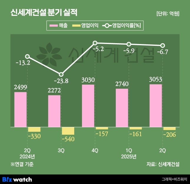 신임 대표에 대한 기대와 별개로 신세계건설이 처한 상황은 그리 밝지만은 않다. 올해 상반기 기준 매출액은 3053억원으로 전년 동기 대비 22.2% 증가했지만 영업이익률은 -6.7%로 여전히 이익을 내지 못하고 있다.