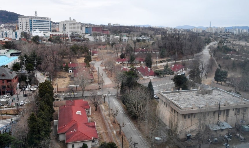 한강로 한 건물에서 바라본 국방부청사와 미군용산기지 사진=한경DB