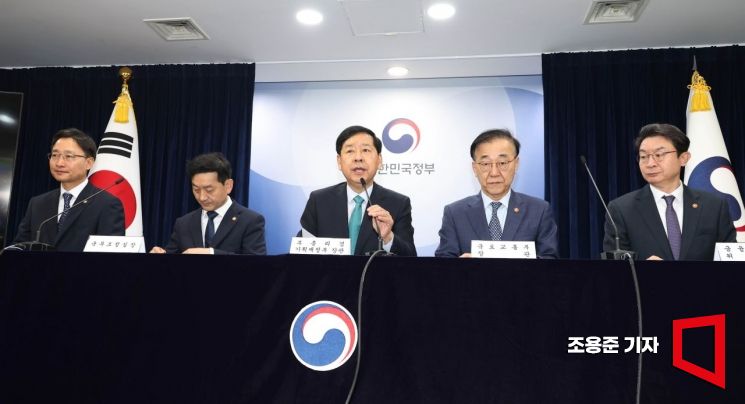 구윤철 경제부총리 겸 기획재정부 장관이 15일 서울 종로 정부서울청사에서 열린 주택시장 안정화 대책 합동브리핑에 참석, 부동산 대책을 발표하고 있다. 이날 발표에는 이억원 금융위원장(오른쪽부터),김윤덕 국토교통부 장관, 구 부총리, 윤창렬 국무조정실장, 임광형 국세청장이 참석했다. 2025.10.15 조용준 기자