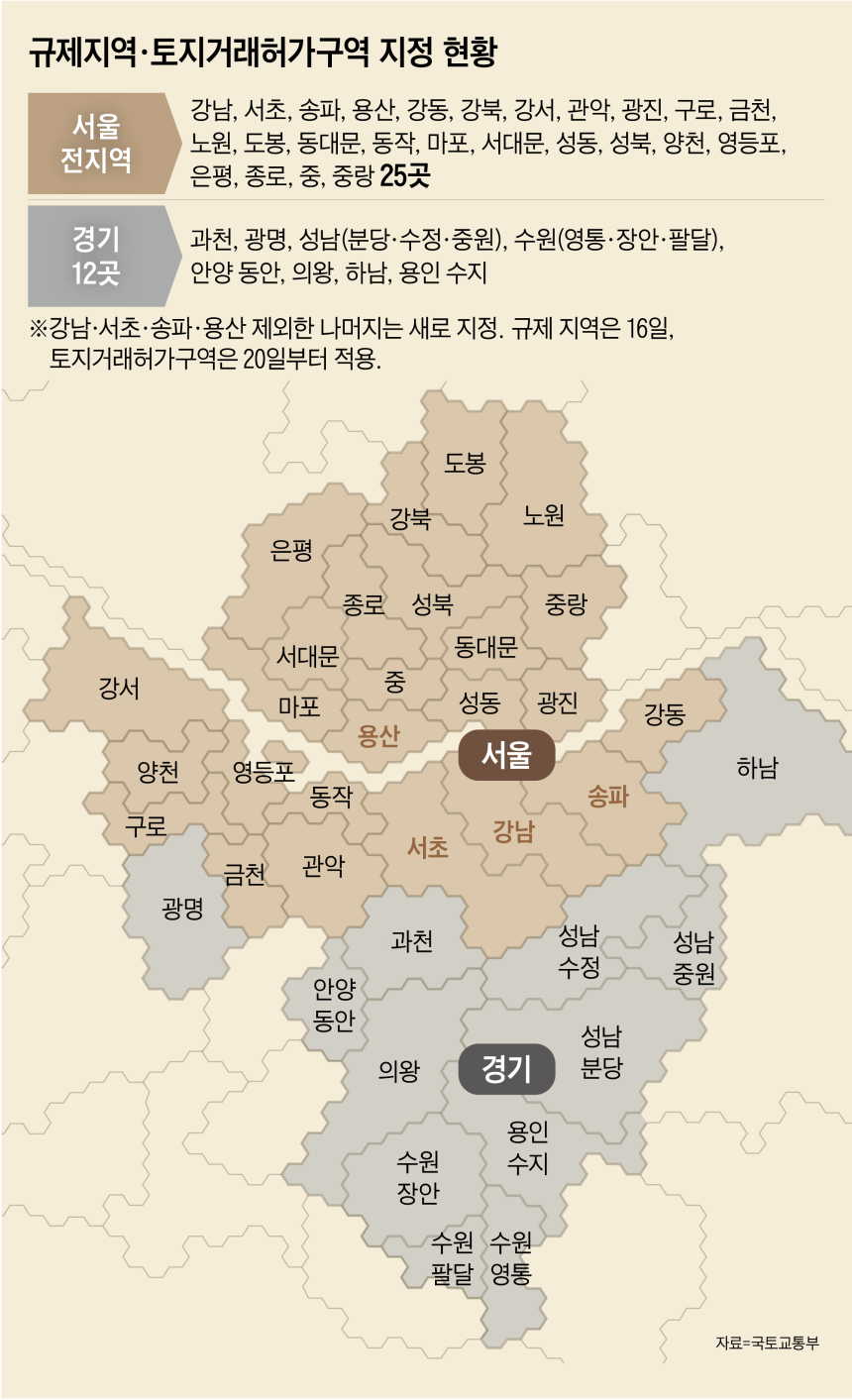 풍선효과 막으려… 서울 전역·경기 12곳에 ‘3중 규제 융단폭격’