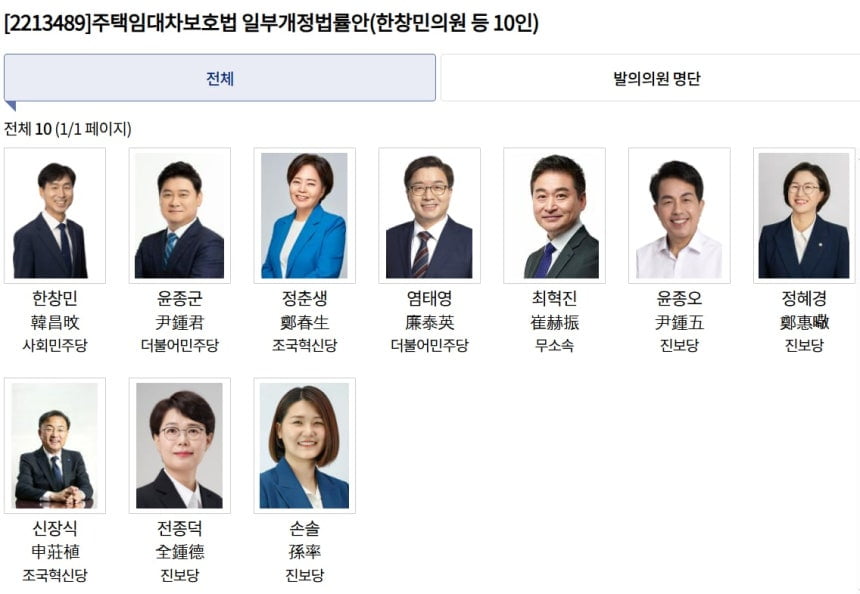 주택임대차보호법 개정안 발의 의원 명단. 사진=국회 의안정보시스템