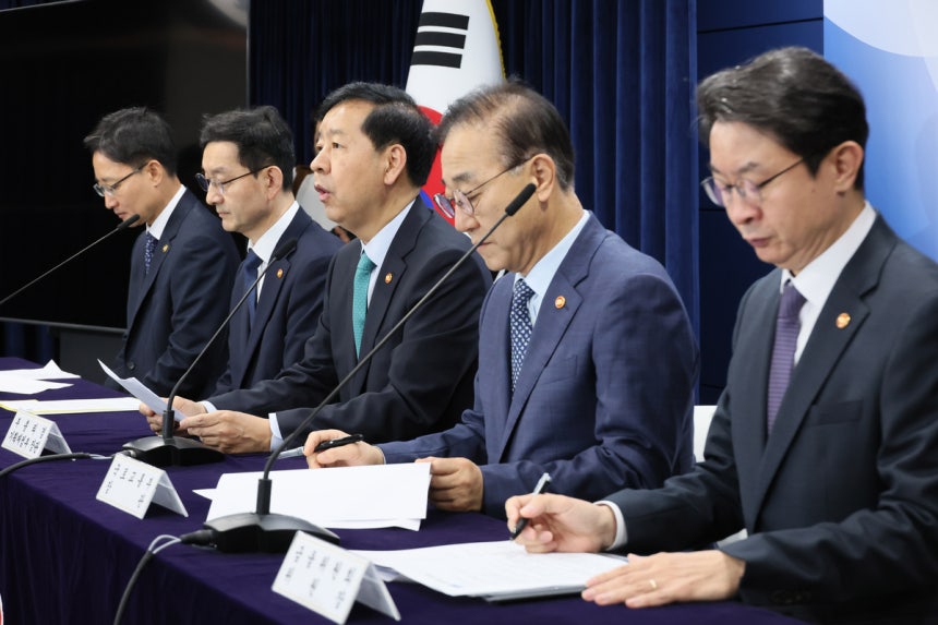 구윤철 부총리 겸 기획재정부 장관(가운데)이 지난 10월 15일 정부서울청사에서 주택시장 안정화 대책 관계부처 합동브리핑을 하고 있다. 왼쪽부터 임광현 국세청장, 윤창렬 국무조정실장, 구윤철 부총리, 김윤덕 국토교통부 장관, 이억원 금융위원장 ⓒ연합뉴스초강력 규제 꺼내든 정부