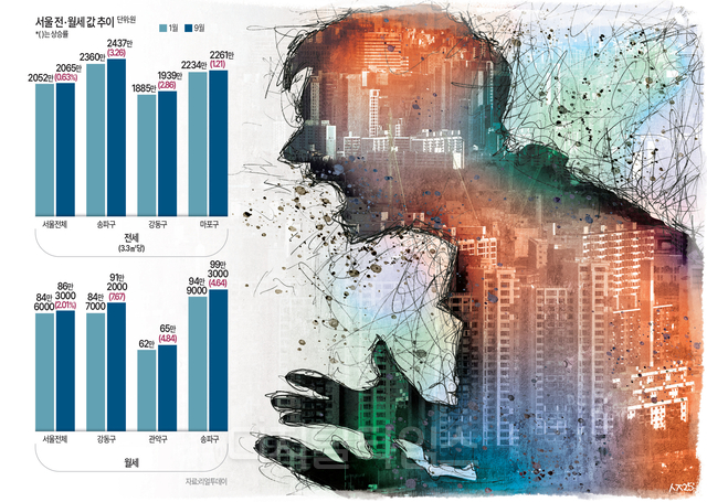 매물 감소에 따라 가격은 상승세다. 부동산 리서치 업체 리얼투데이에 따르면, 올해 9월 서울 아파트 3.3㎡(1평)당 전셋값은 2065만원으로, 올해 1월(2052만원) 대비 0.63% 상승했다. 주거 선호지인 송파구의 상승률이 3.26%로 가장 높았고 이어 강동구(2.86%), 용산구(1.72%), 마포구(1.21%) 등의 순이었다.