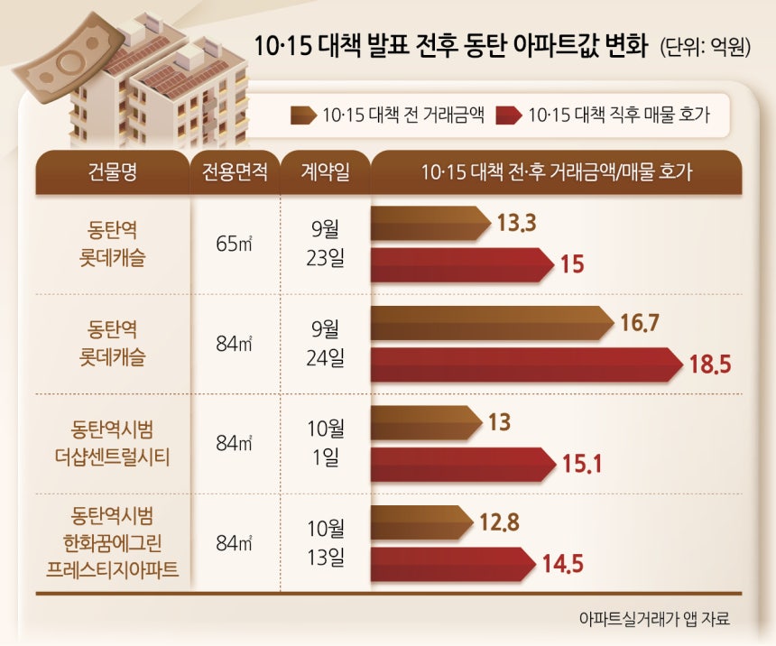 실제 정부는 10·15 대책에서 서울 25개구 전역과 경기 남부 12개구 등 구 단위로 규제대상 지역을 정했다.