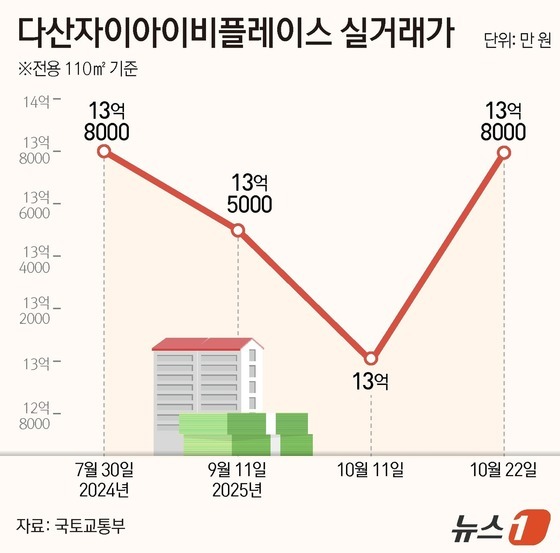 다산자이아이비플레이스, 지난해 최고가 13억 8000만 회복