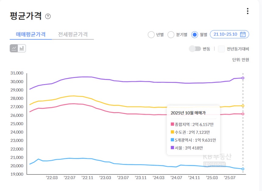 사진=KB부동산 데이터허브 갈무리 아파트 거래가 얼어붙은 서울 부동산 시장에서 실거래 및 투자 수요가 오피스텔로 빠르게 이동하고 있다. 아파트에 집중된 각종 규제와 공급 부족이 이어지자 상대적으로 규제 사각지대에 있는 오피스텔이 대체 주거지로 부상하고 있는 것이다. 28일 KB부동산에 따르면 올해 10월 기준 서울 오피스텔 매매가격지수는 124.57로 연중 최고치를 기록했다. 지난 5월(123.83)까지 마이너스를 기록하던 매매가격지수는 지난 6월(123.96)이후 꾸준히 상승세를 이어왔다. 서울 내에서도 도심권 오피스텔 매매가격지수는 127.52로 서울 전체 평균을 상회한다.