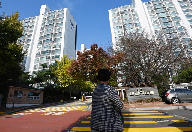 이찬진 금융감독원장이 최근 실거래가보다 4억 원 비싼 가격에 매물을 내놔 논란이 커진 서울 서초구 우면동 대림아파트를 29일 오전 한 시민이 바라보고 있다. 윤성호 기자