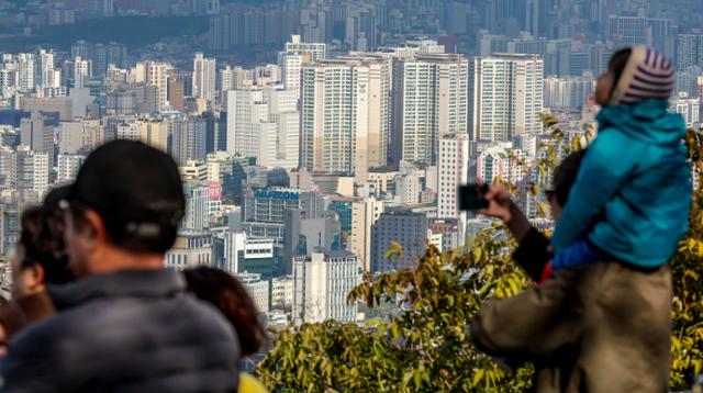 2일 서울 중구 남산에 바라본 시내 아파트 단지. 뉴시스10·15 부동산 대책 영향으로 수도권 아파트 매수세가 한풀 꺾였지만 서울 강남권에서는 신고가 거래가 줄을 잇고 있다. 거래 절벽과 집값 상승세가 함께 나타날 것이라는 업계 전망이 현실화하는 모양새다.