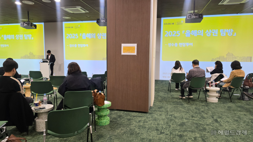 지난 31일 서울 성동구 성수동에서 KB국민은행 WM추진부의 ‘올해의 상권 탐방’ 현장투어가 진행되기에 앞서 설명회가 진행 중이다. 홍승희 기자