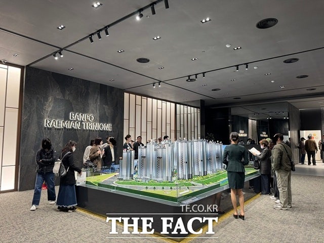 삼성물산이 선보이는 '반포 래미안 트리니원'이 7일 견본주택을 열고 본격적인 분양에 나섰다. /황준익 기자"학군 좋고 교통 좋고, 무엇보다 반포라는 입지가 다 말해주잖아요."(견본주택 방문객 A씨), "분양가가 비싸긴 하지만 시세 차익을 기대하면 로또죠."(견본주택 방문객 B씨)