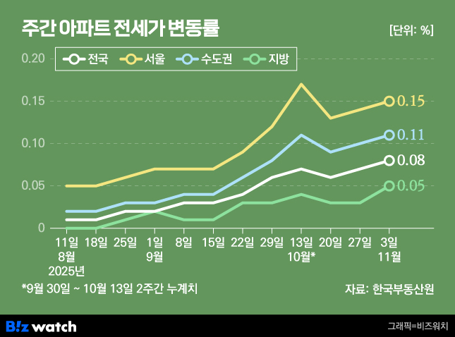 주간 아파트 전세 가격 변동률./그래픽=비즈워치전세도 불안…"내년 집값 더 오른다"