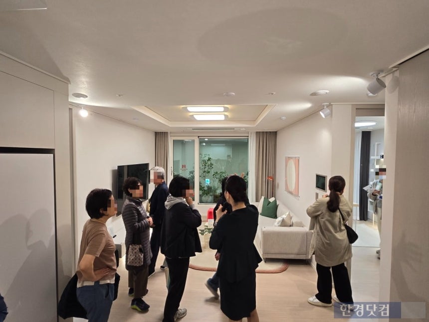 이 타입을 둘러본 40대 예비 청약자는 "직접 보니 전반적으로 좁다는 느낌이 많이 들었다"며 "드레스룸도 좁아 방 하나를 옷방으로 써야 할 것 같다"고 말했다. 50대 또 다른 예비 청약자도 "방이 너무 좁은데 벽을 틀 수 있느냐"며 유닛 내 직원에게 물어보는 모습도 포착됐다. 또 다른 40대 예비 청약자는 "세탁실이 내부에 있어서 편하기는 할 것 같은데 슬라이딩 도어로 돼 있어서 생각보다 시끄러울 것 같기도 하다"고 말하기도 했다.