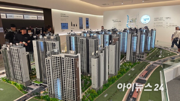 31일 경기 파주시 '운정 아이파크 시티' 견본주택에 설치된 모형도. 2025.10.31 [사진=이수현 기자]